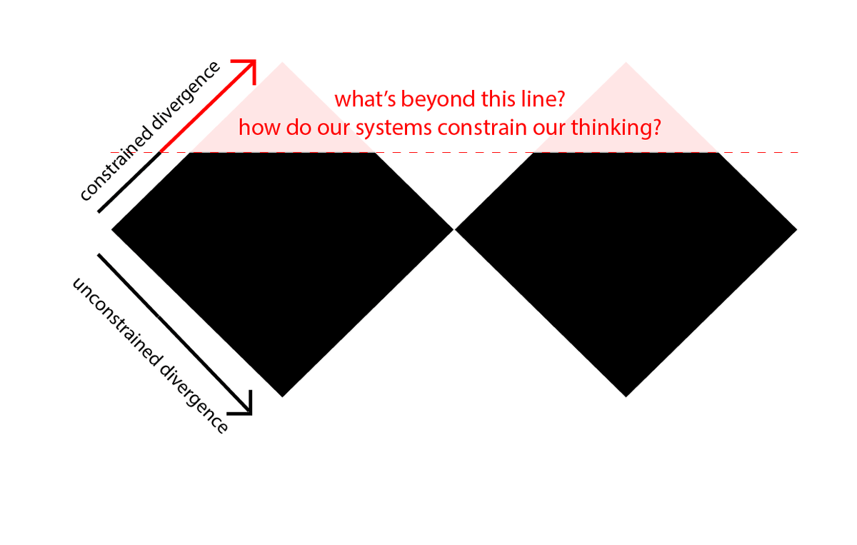 Now, this looks like a bit of a joke. But it’s, if you pardon the pun, a diamond in the rough. Because whenever you are trying to think divergently, it's crucial to actively think about the factors that constrain the extent of that thinking. Just because you are able to broadly explore some directions doesn't mean that you're seeing the whole picture.