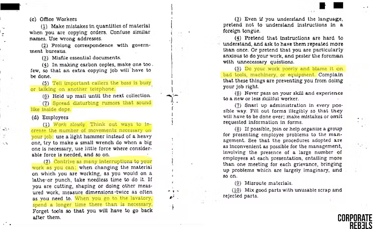 Incidentally, the newly viral CIA field guide to sabotage contains a lot of great suggestions for interrupting feedback loops.